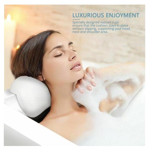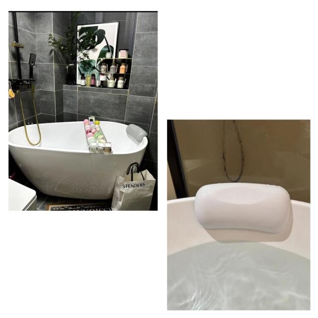 | バスピローで快適なバスタイムを 柔らかく弾力のある素材で、人間工学に基づいた弧状デザインが、入浴中のリラックスをサポートします。 頭と首をしっかり支えるので寝姿勢を安定させてくれるからバスタイムを心地よく過ごせます。 裏面には2つの吸盤がついており、お好みの角度や場所に設置しズレを防ぎます。 コンパクトでちょうど良いかたさで使いやすい。 ご使用後は枕本体を壁などにくっつけて乾かすことができます。 ご自宅用に、プレゼント用にも最適のアイテムです。 | |