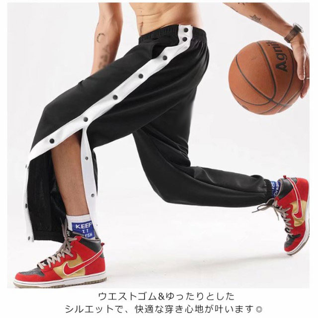 バスケットボールパンツ メンズ サイドボタン スナップボタン バスケットパンツ バスケパンツ サイドライン ジャージ ロングパンツ 春 秋 トレーニングウエア 長ズボン スウェット スポーツウエア バスパン 男性用 レディース 女性用 ユニセックス