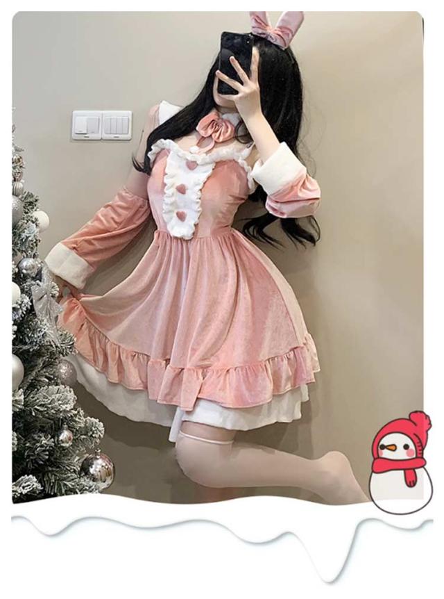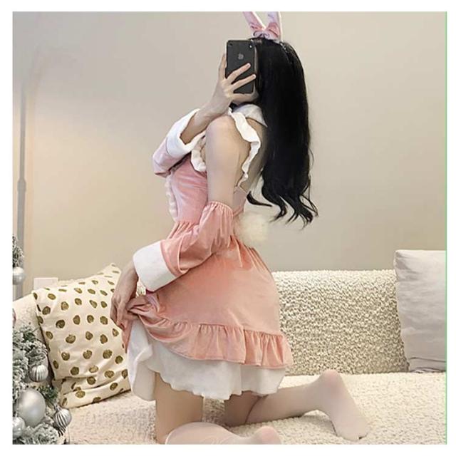 ワンピース クリスマス衣装 クリスマス 兎 フリル クリスマスバニー ドレス バニー サンタバニーガール コスチューム クリスマス衣装 うさぎ コスプレ 衣装 可愛い セクシー 髪飾り 腕カバー パーティー イベント 忘年会