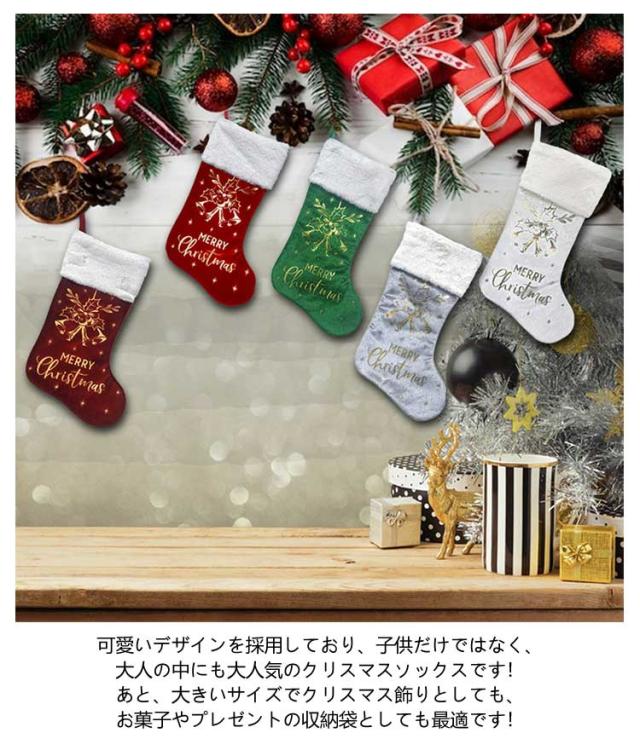 | 壁に掛けるだけでクリスマスの世界に クリスマス靴下 5枚セット お菓子、キャンディ、プレゼントなどを入れる十分な大きさで、子供たちにサプライズする用にオススメです。素敵なクリスマスプレゼントやデコレーションになりましょう。 便利な掛け紐が付いております。ドア、壁、窓ぎわ、クリスマスツリー、ベッドサイトなどお好きなところにクリスマス飾りとしてかけることができます。 可愛いデザインを採用しており、子供だけではなく、大人の中にも大人気のクリスマスソックスです!あと、大きいサイズでクリスマス飾りとしても、お菓子やプレゼントの収納袋としても最適です! | |