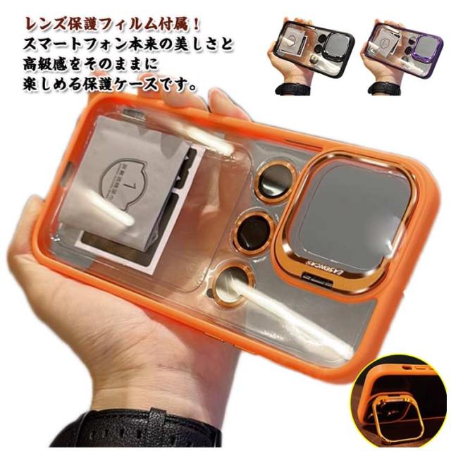 iPhone16pro iPhone16 ケース レンズスタンド機能 16promax 16plus iPhone15pro 透明ケース 透明ケース 【レンズ保護フィルム付属】 クリア ケース 折りたたみ アイフォンケース iPhone15 iphone14pro ケース 耐衝撃 iPhone13