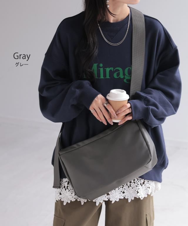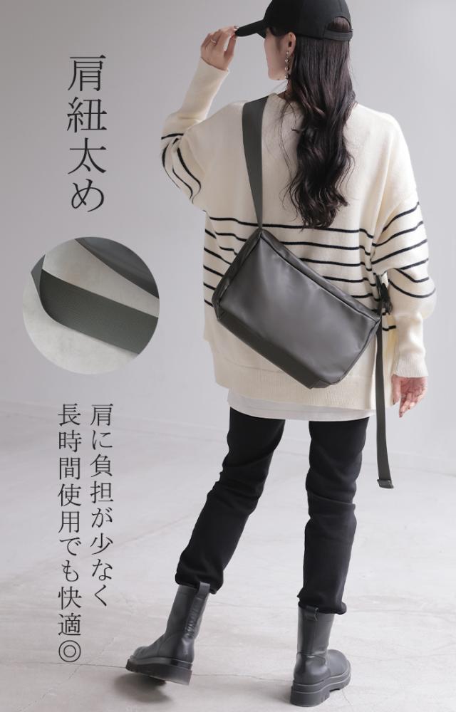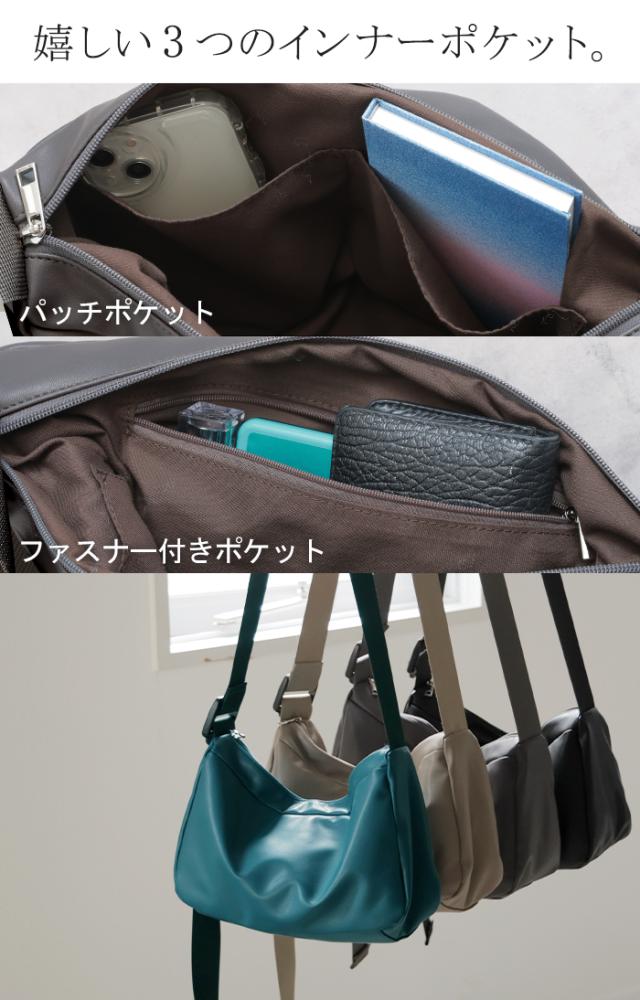 バッグ ショルダー レザー 風 レディース ショルダーバッグ 大容量 肩掛け 斜めがけ 斜めがけバッグ ベルト スクエア 調節可能 本革 風 カバン 鞄 かばん インナーポケット サブバッグ きれいめ 上品 通学 通勤 女性 マチ 黒 グレー 秋 冬 HUG.U 秋新作