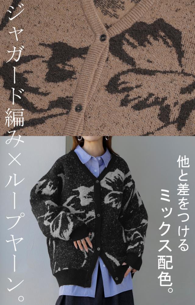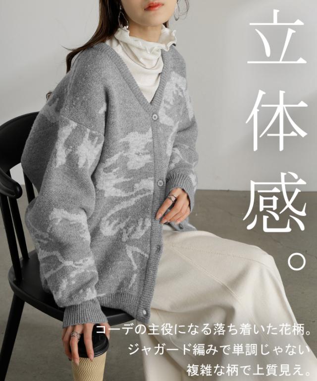 全体にあしらった大きなフラワーがレトロ&クラシカルなカーディガンです。
