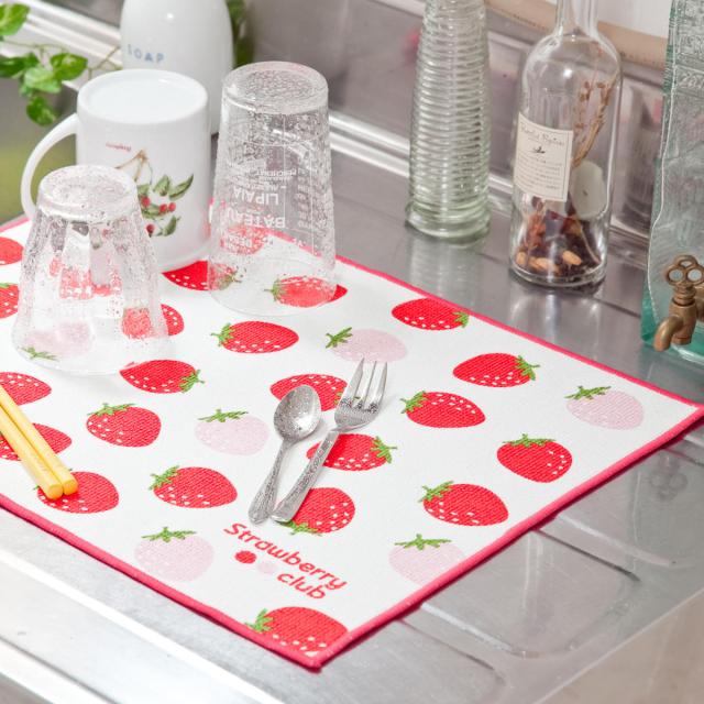 《 LH16996 ランチョンマット 台拭き ダスター 食器洗い 皿洗い 食器置き 食器用 調理器具用 一時置き 水切りディッシュマット 自然乾燥 水きり 水切り収納 キッチン収納 キッチン用品 台所用品 キッチングッズ 水回り用品 便利 役立つ おすすめ オススメ シンプル 手洗い いちご ストロベリー 》
