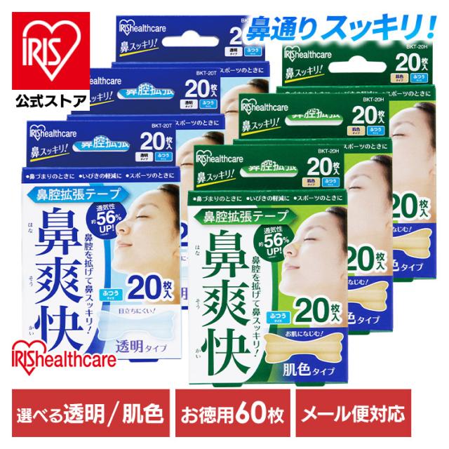 鼻腔拡張テープ 鼻腔拡張テープ 鼻呼吸テープ 口閉じテープ いびき防止グッズ いびきテープ 60枚 肌色 透明 BKT-20T BKT-20H アイリスオーヤマ (メール便) いびき防止グッズ いびきテープ 鼻詰まり いびき軽減 スポーツ 呼吸しやすい 送料無料