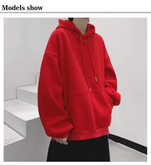 | M-5XL!裏起毛ビッグシルエットの無地パーカー。 軽量で耐久性もあるポリエステル素材を使用。 シンプルながらもオーバーサイズ感でトレンド感のあるズルズルコーデの完成でき、体型カバーも叶う。 男女兼用なのでスカートにもパンツにも合わせやすく幅広いスタイリングが楽しめる。 | |