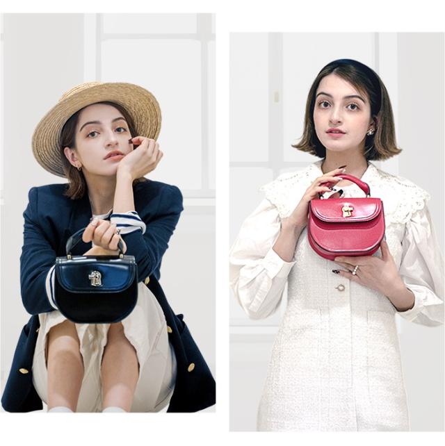 飾りのようなハンドルを付けたサドル型のポシェット。