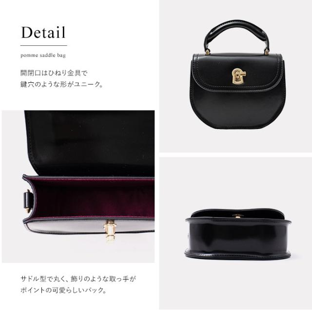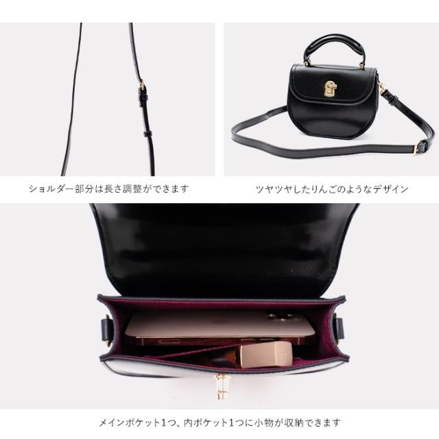 pomme(リンゴ)のような丸くてつやつやなバッグです。