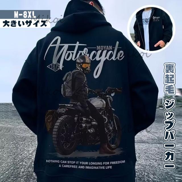 ジップアップパーカー メンズ パーカー スウエット 裏起毛 長袖 ユニセックス トップス 大きいサイズ 秋冬 コート ゆったり フード付き ライトアウター バックプリント おしゃれ