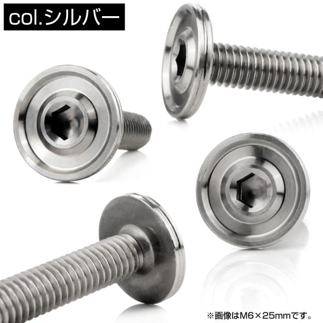 ボタンボルト M6×15mm P1.00 薄型 デザインヘッド フラット SUS304 六角穴 カスタムボルト マット シルバー TR1161