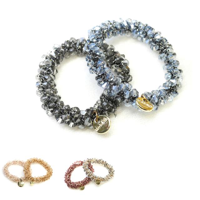 送料無料 ヘアゴム ヘアアクセサリー ポニー カットビーズ きらきら キラキラ コイル巻き まとめ髪 2色セット