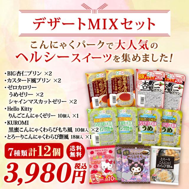 デザートMIX 詰め合わせセット こんにゃくゼリー ダイエット食品 こんにゃくプリン パウチ ひとくち ゼリー 杏仁プリン わらび餅 ダイエットゼリー こんにゃくパーク 低カロリー デザート スイーツ 群馬県産 置き換え (7種類*12個入)