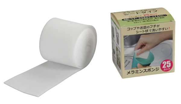 ミシン目入りのロールタイプのメラミンスポンジです。