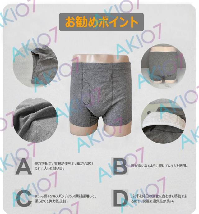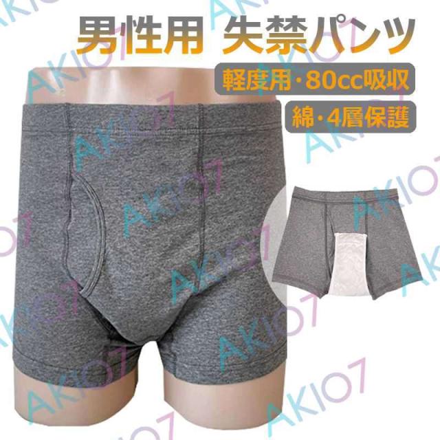 【2枚】【軽度80cc失禁対応】尿失禁用パンツ 失禁パンツ 抗菌 防臭 立体編み 4層保護 綿 介護用 メンズ 男性用 ボクサーパンツ 前開き 在宅介護/病院/施設 高齢者