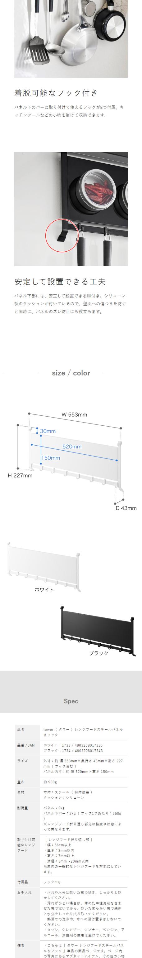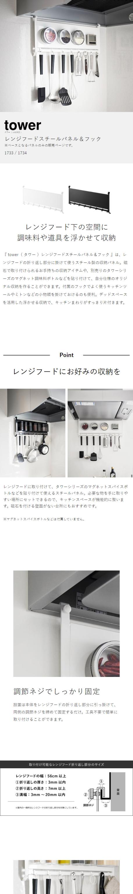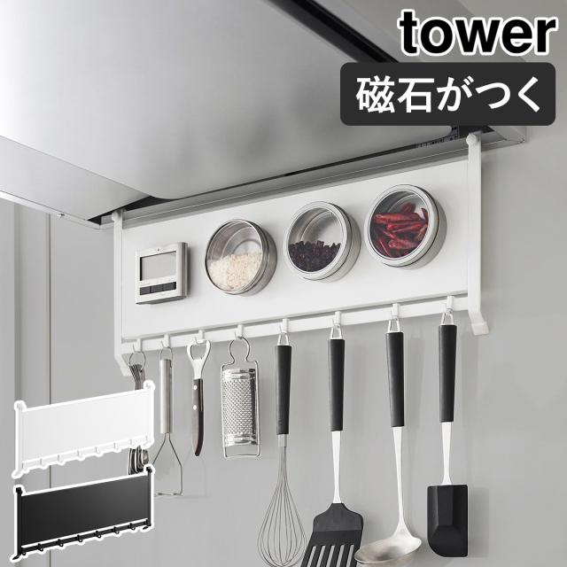 [ レンジフードスチールパネル&フック タワー ]山崎実業 tower マグネット 収納 スチールパネル キッチン収納 マグネットが付く 磁石 台所 レンジフード 浮かせる収納 キッチンツール 北欧 おしゃれ yamazaki 公式 モノトーン ブラック ホワイト 1733 1734