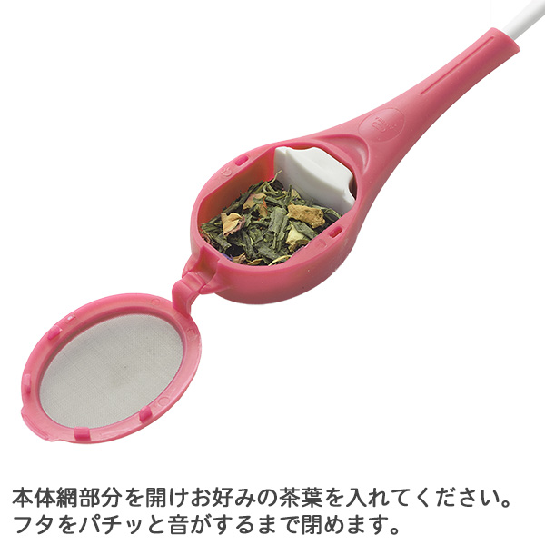 1.本体網部分を開けお好みの茶葉を入れてください。フタをパチッと音がするまで閉めます。
