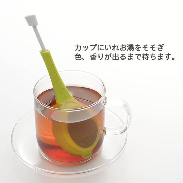 TEA PRESS(ティープレス)はお好みの茶葉を入れてお湯に浸してプレスするだけ。