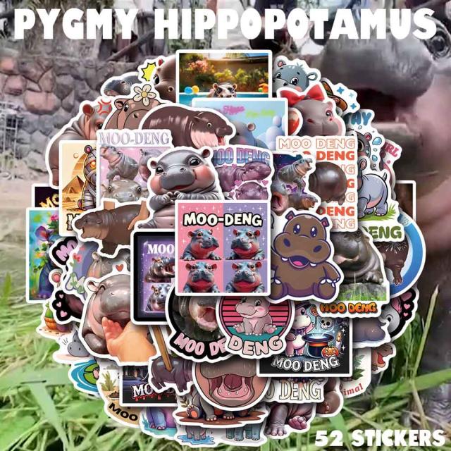 コビトカバ ステッカー 52枚セット PVC 防水 シール カバ ムーデン タイ 赤ちゃん コガタカバ ミニカバ 動物 スーツケース