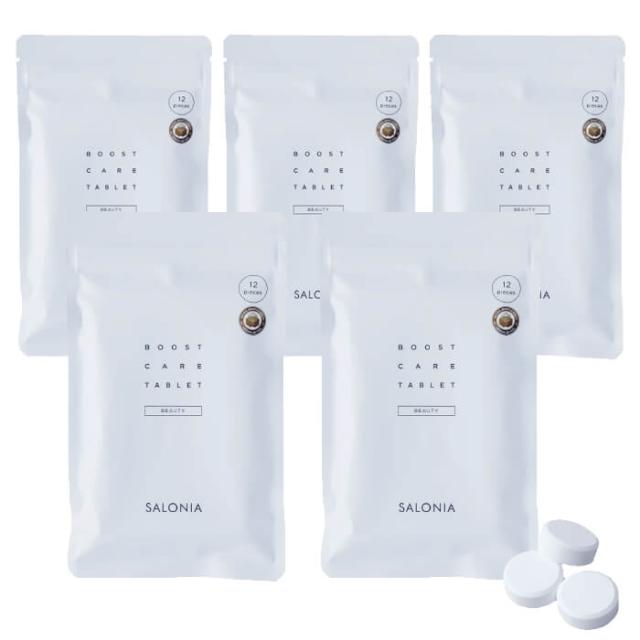 サロニア ブーストケアタブレット 重炭酸タブレット 12錠入り 5個セット 炭酸ヘッドスパ 重炭酸シャワー ヒアルロン酸 コラーゲン 入浴剤 ファインバブルクリア SALONIA【※北海道・沖縄発送不可】