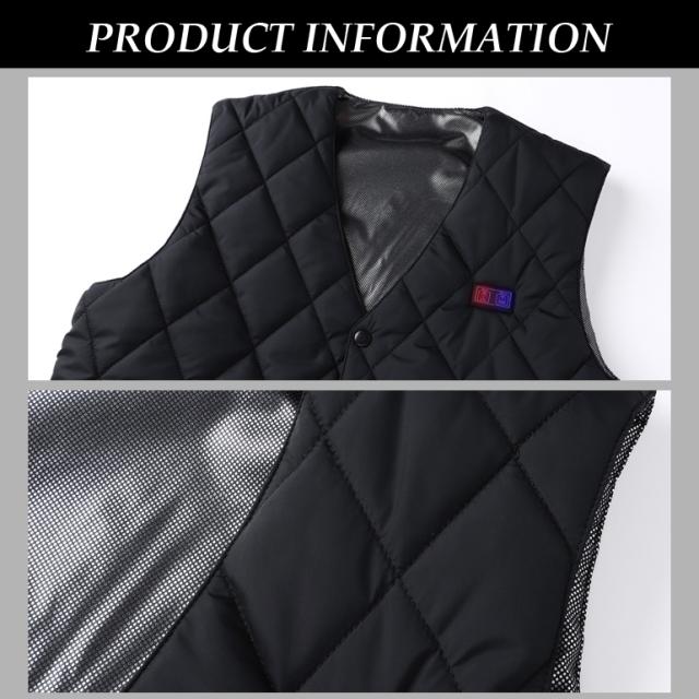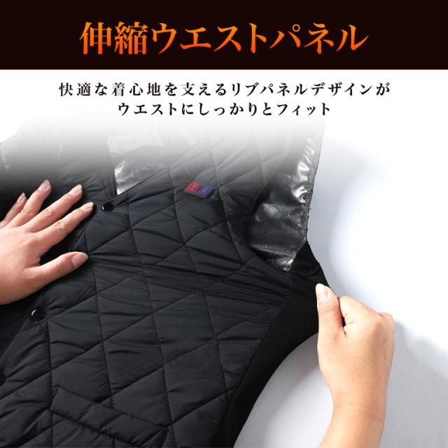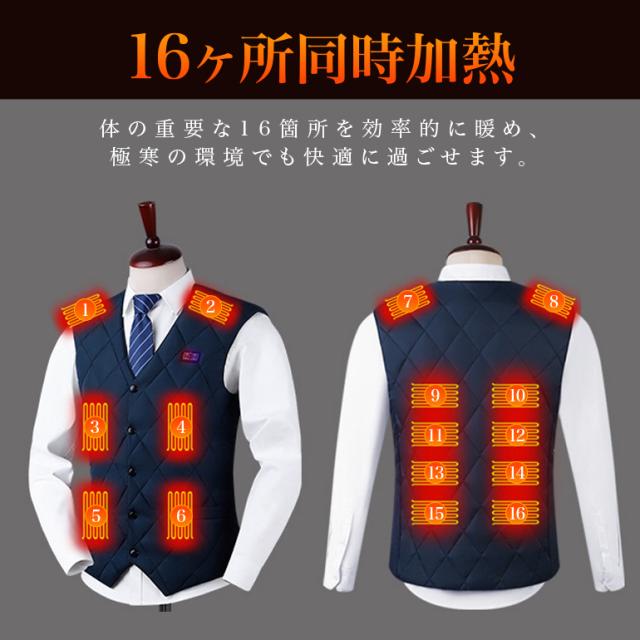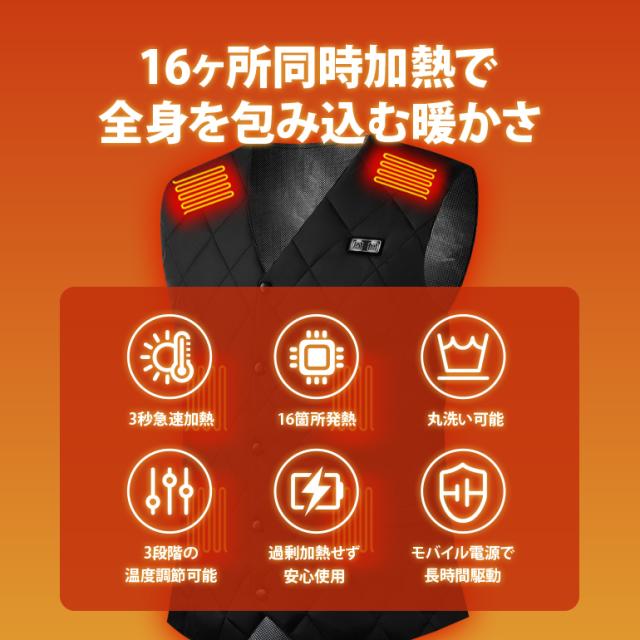 前後独立で温度調節できる16箇所発熱の電熱ベスト。