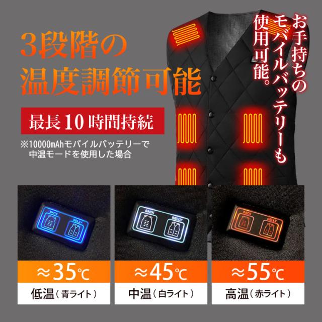 電熱ベスト 電熱 発熱ベスト ベスト ヒートベスト インナー 防寒着 屋外作業 作業着 加熱ベスト ヒーター ベスト 3段階温度調節 急速発熱 洗濯可 USB給電式 電気ベスト usb 丸洗い 男女兼用