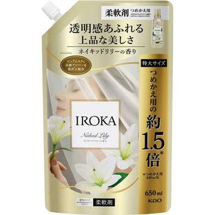 ◆特大サイズ:つめかえ用の約1.5倍※ ※つめかえ用440ml比◆香水のように香り高いプレミアム柔軟剤 IROKA◆素肌のあたたかさを想わせる「ピュアムスク※1 」と、香水には欠かせない「アンバー」を贅沢※2 に使用。◆香水のように上質、なのに透明感あふれるその香りは、あなたらしい美しさを、上品にさりげなく引き立てる。※1 天然ムスク香気の主成分と同構造のl-Muscone※2 メーカー柔軟剤比◆ネイキッドリリーの香り:さわやかなウォータリーグリーンにリリー、マグノリアの花々を重ねた透明感あふれる、上品な香り。◆アップサイクル香料※3配合◆天然香料※3配合◆着用中香り続ける◆植物由来の柔軟成分配合◆抗菌※4防臭効果※3 香料中※4 すべての菌の増殖を抑制するわけではありません