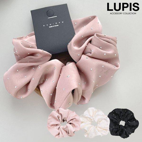 ヘアアクセサリー ヘアゴム シュシュ サテン キラキラ ドット柄 シンプル 華やか 上品 ポニー お団子 ヘアアレンジ 韓国 韓国っぽ