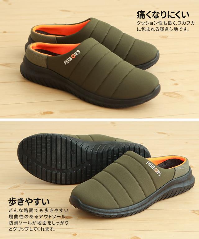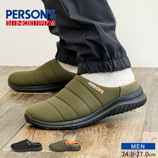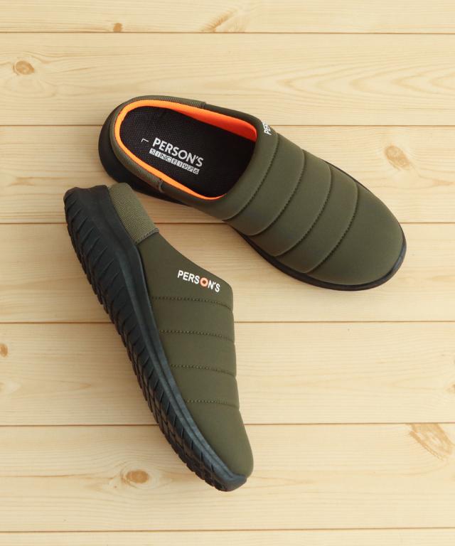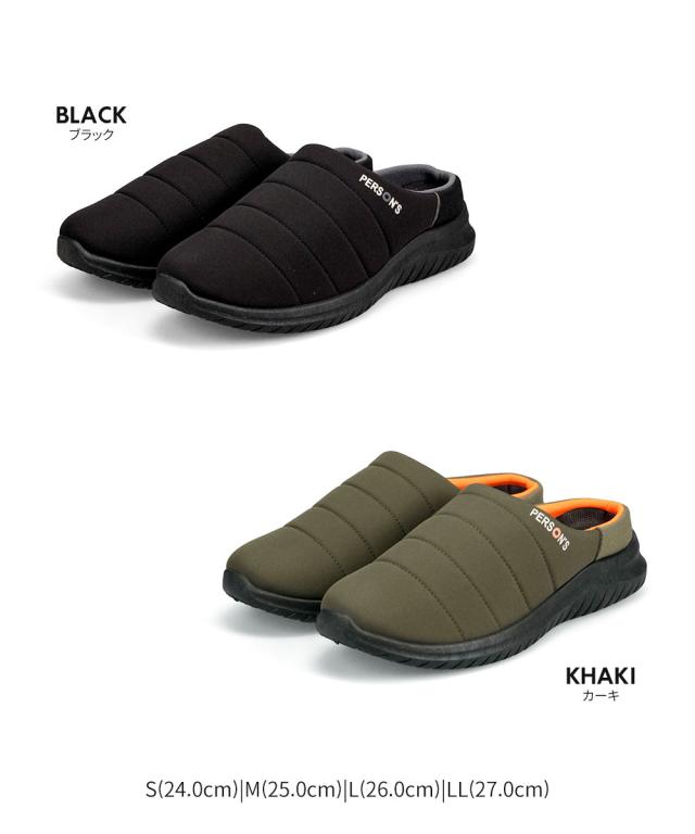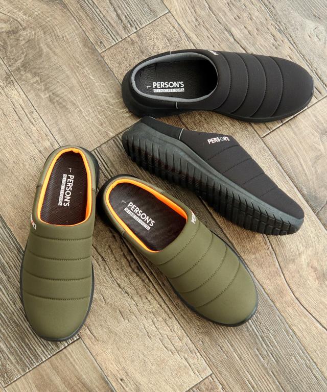 モックシューズ メンズ サボサンダル かかとが踏める スリッポン アウトドア キャンプシューズ クロッグサンダル サボ サンダル スリッパ おうちキャンプ グランピング キャンプ テントシューズ 黒 ブラック カーキ PERSON'S パーソンズ 1825