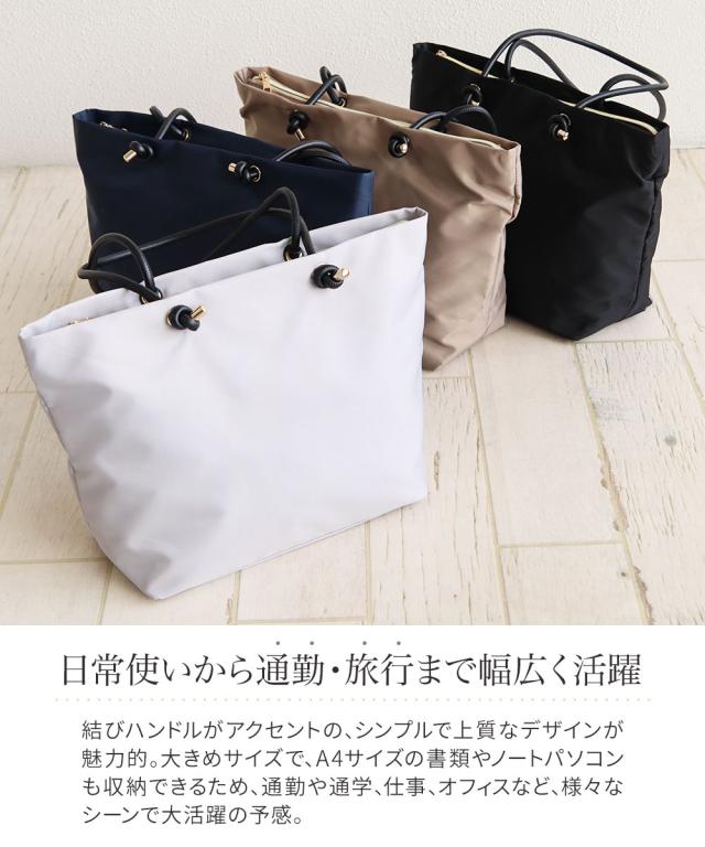 結びハンドルがアクセントの、シンプルで上質なデザインが魅力的なアイテムです。
