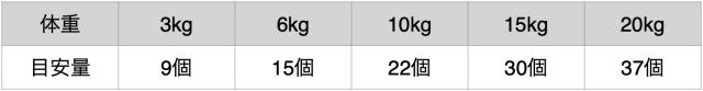 ・給与量はあくまで目安となります。犬種や活動レベル、体質、気候等により調節してください。