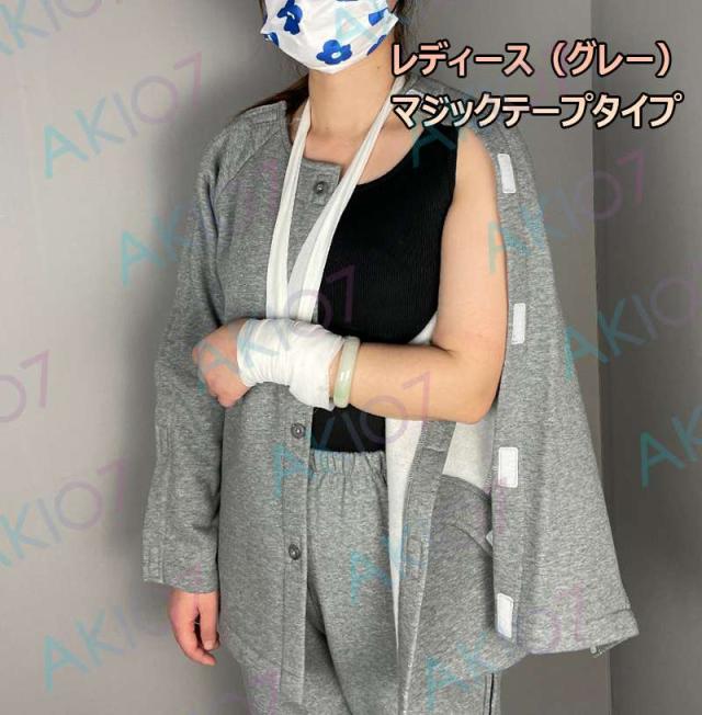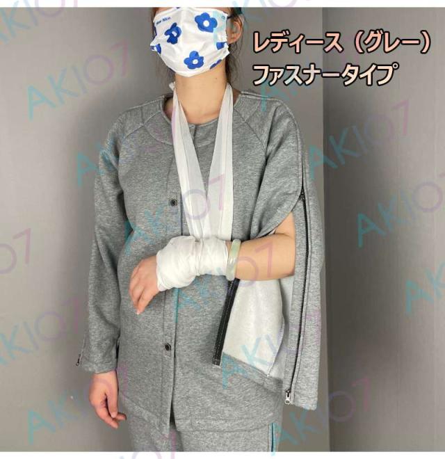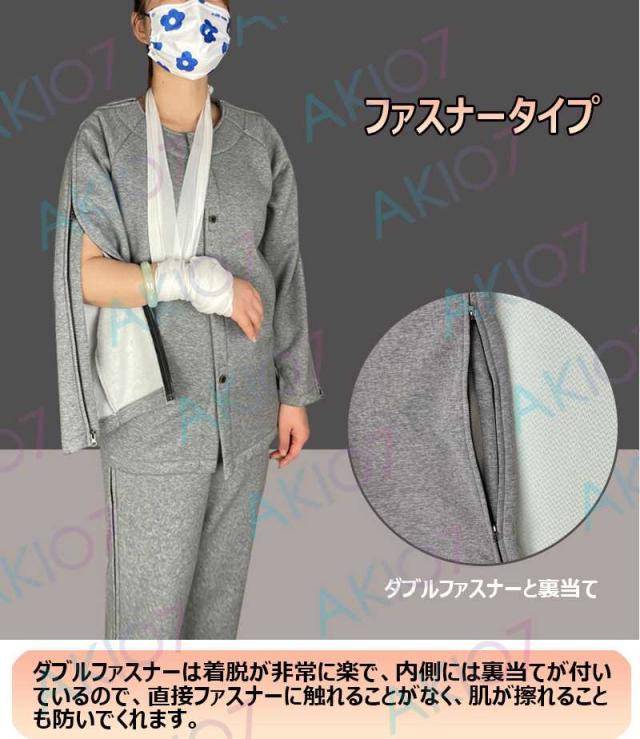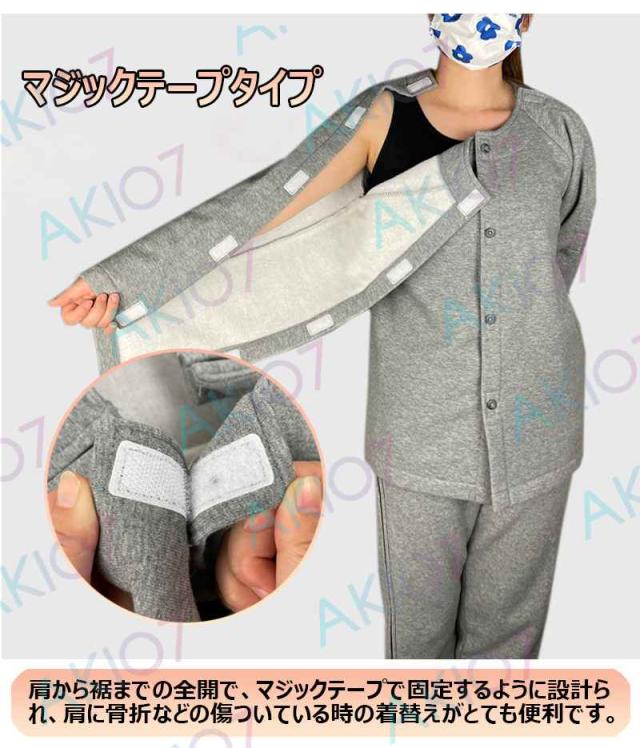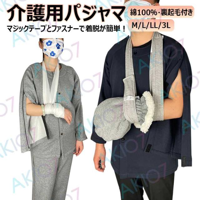 【裏起毛&上着のみ】介護用パジャマ マジックテープ ファスナー付き 介護パジャマ 通年用 長袖 秋冬 綿100% 全開 フルオープン 寝たきり 術後 入院 点滴中サポート
