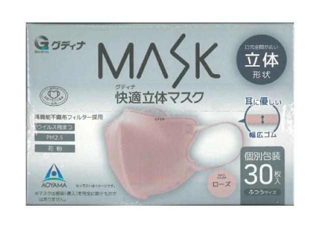 【20個セット】 【30枚入】グディナ 快適立体マスク 個包装 ローズ ふつうサイズ 30枚入×20個セット