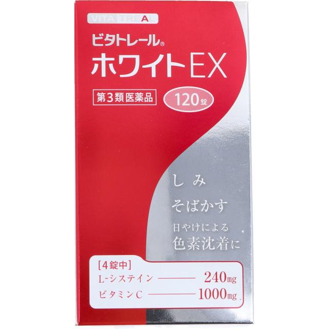 ●ビタトレールホワイトEXは、しみ、そばかすの緩和にL-システインやビタミンCのほか、6種のビタミンを配合したビタミンC主薬製剤です。