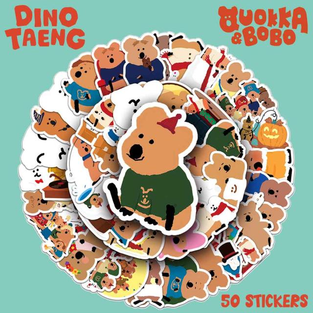 クオッカ&ボボ ステッカー 50枚セット QUOKKA & BOBO ダイノテン Dinotaeng ワラビー 防水 シール 韓国 キャラクター