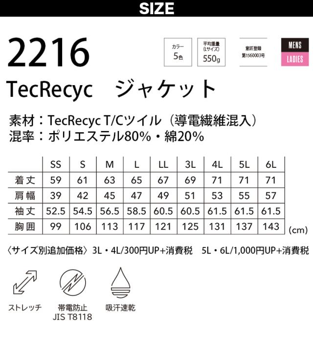 2024年秋冬新作 TS Design 2216-big 5L 6L TecRecycジャケット 上着 ブルゾン JIS T8118規格適合 静電気帯電防止作業服 エコ素材 メンズ ユニフォーム 作業服 作業着 かっこいい おしゃれ