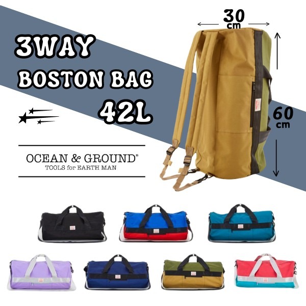 Ocean&Ground 3WAY ボストンバッグ M 42L キッズ ジュニア 大容量 大きい ボストンBAG リュック ショルダーバッグ お泊りバッグ 肩掛け 手提げ 旅行バッグ 旅行 合宿 アウトドア 修学旅行 キャンプ オーシャンアンドグラウンド 4415012