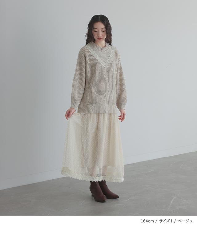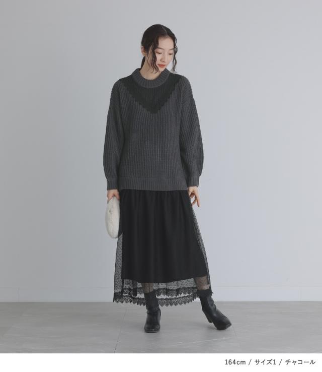 ワンピース レディース 長袖 ニット ニットワンピース ワンピ ニットワンピ ドッキング チュール オシャレウォーカー 【TP】 ロングワンピース マキシワンピース ロング丈 マキシ丈 無地 異素材MIX レイヤード 重ね着 おうちで洗える 裏地付き あったか 冬 カジュアル キレカジ フェミニン ガーリー Sサイズ Mサイズ Lサイズ LLサイズ 3Lサイズ XLサイズ 10代 20代 30代 40代 50代 60代 低身長 高身長 女子会 オフィス 通勤 通学 お買い物 お出掛け 旅行 リゾート レジャー アウトドア キャンプ おしゃれ お洒落 トレンド 流行 パーティー 二次会 学校行事 ママ 母 母親 somari imagination ソマリイマジネーション 可愛い系 大人女子 大人可愛い お洒落可愛い 大人カジュアル レトロ クラシカル ナチュラル osharewalker ドッキングワンピース ドットチュール ベージュ グレー 灰色 杢グレー ライトグレー チャコールグレー チャコール[ID]14dm0ty