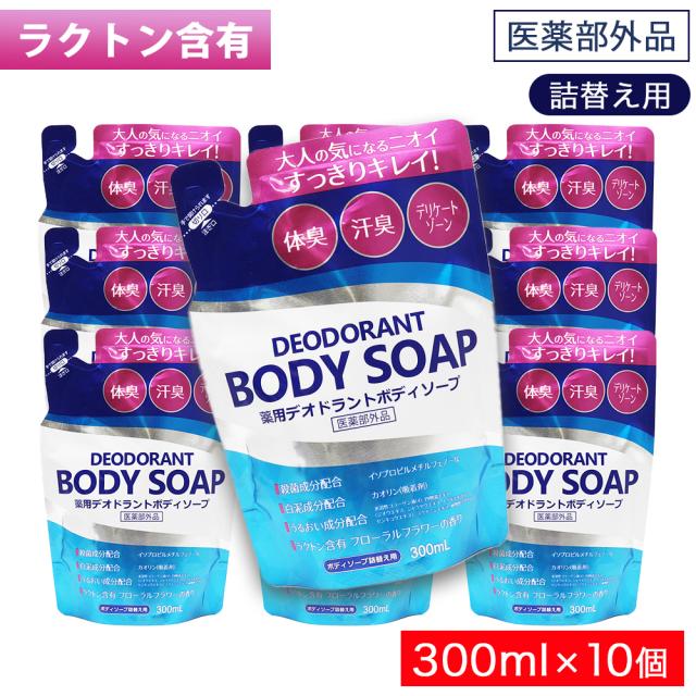 薬用 デオドラント ボディソープ 詰替え用 300mL ×10個 体臭 汗臭 デリケートゾーン 日本製 医薬部外品