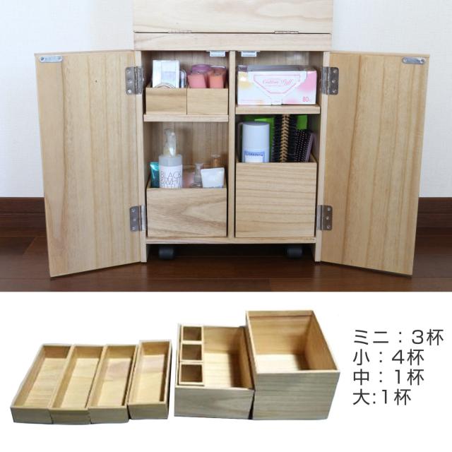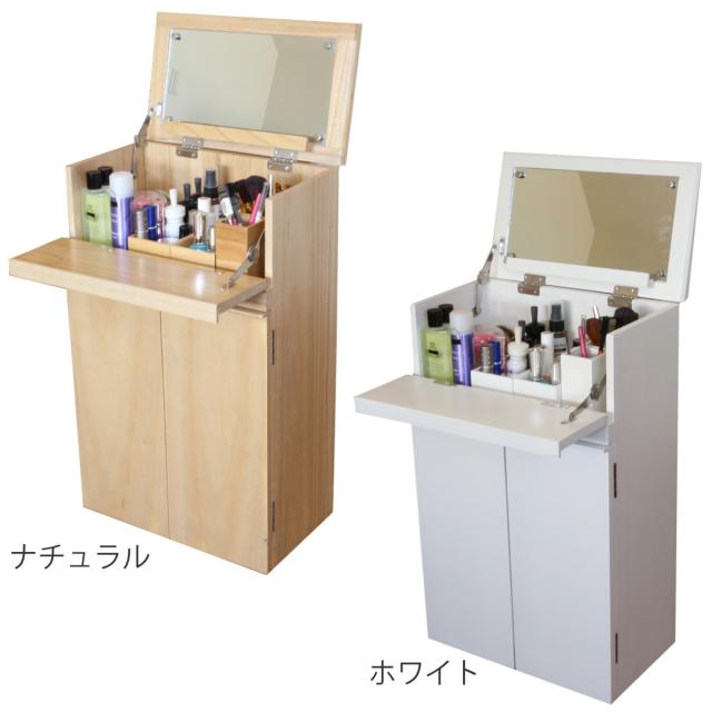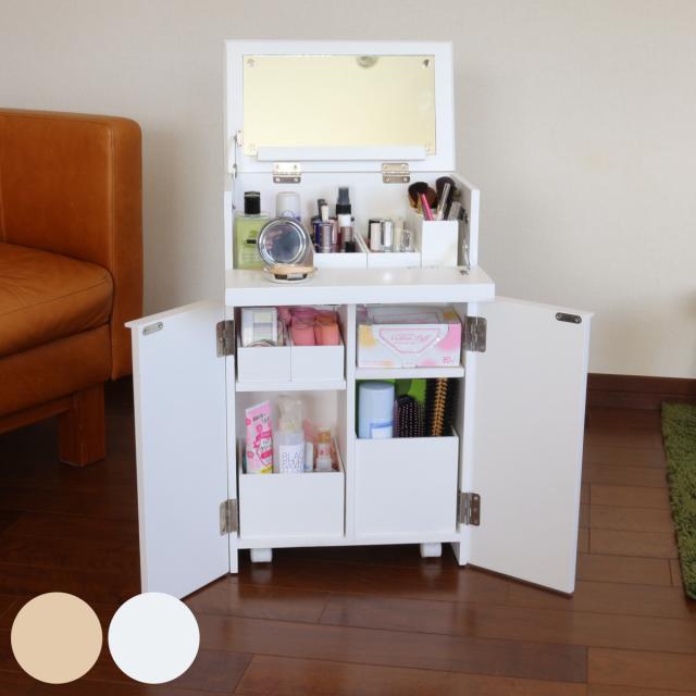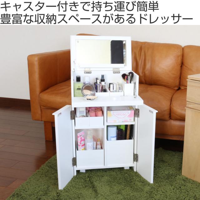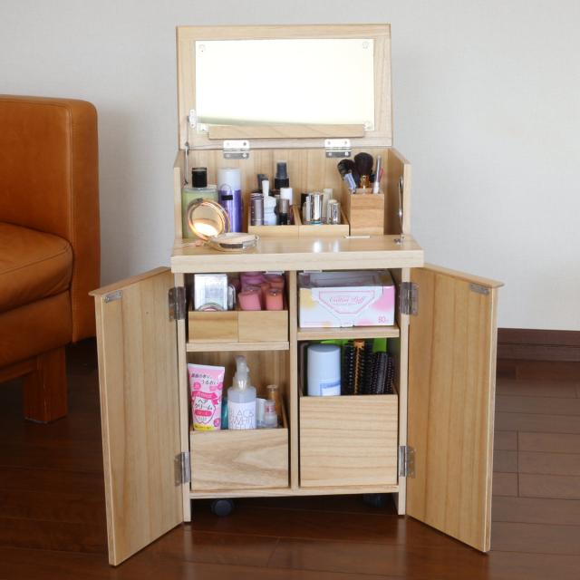 ドレッサー コスメワゴン 隠しキャスター付 ミラー付 サイドテーブルにもなるコスメワゴン ( スリム サイドテーブル 収納 棚 ラック シェフ 大容量 コスメ 化粧品 コンパクト 木製 )