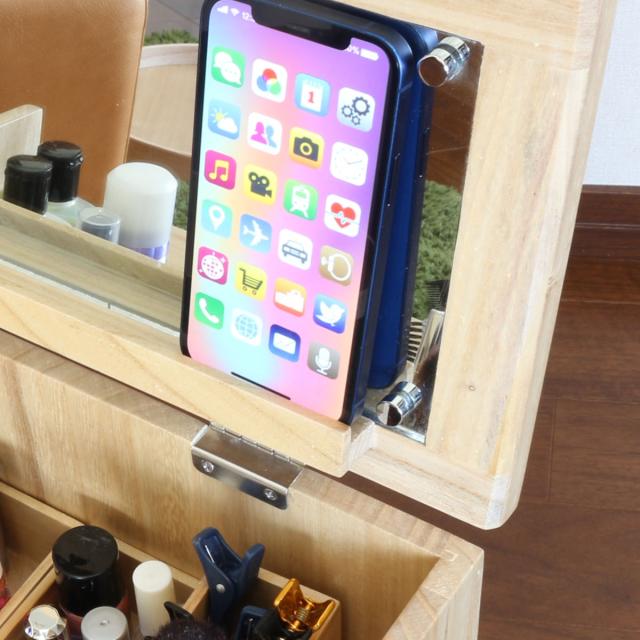 鏡の場所にスマホを立て掛けれる仕様になっておりますので、お好きな動画などを見ながらメイクしていただけます。