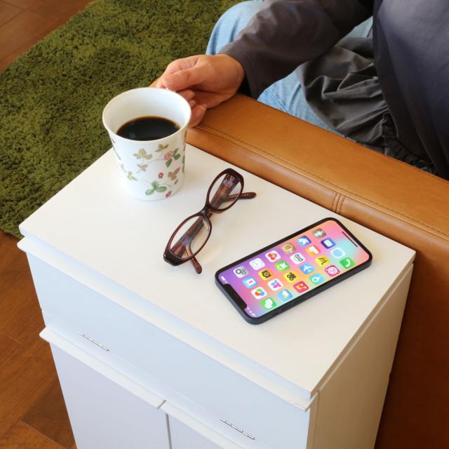 コンパクトなデザインで部屋に馴染むシンプルなフォルムです。リビングやベッドルームのインテリアにも自然に溶け込み、置き場所に困りません。ソファ横に置いて、サイドテーブルとしてもお使いいただけます。