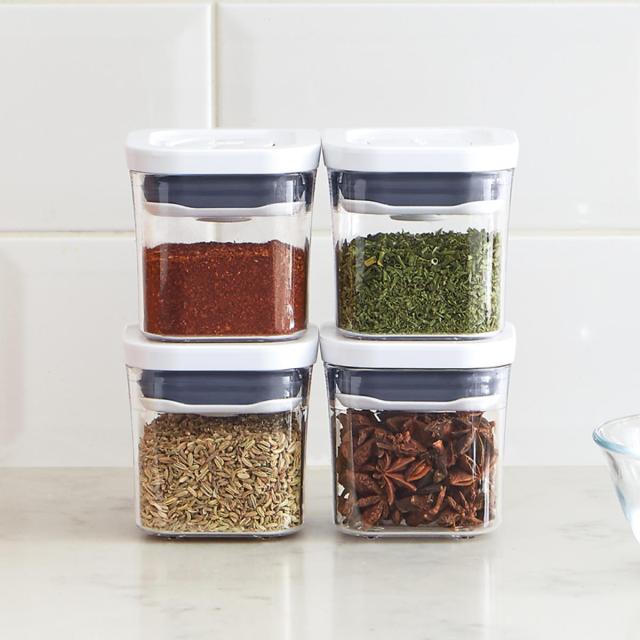 便利なミニサイズのポップアップコンテナ200ml、4個セットです。調味料やスパイス、ドライハーブ、茶葉、小物などの収納にぴったりです。中身が見えるので、見せる収納にしてもおしゃれです。買い足しにはもちろん、化粧箱入りなのでギフトにもおすすめです。