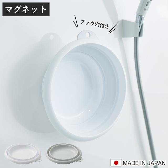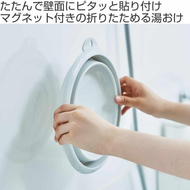湯おけ おりたためる湯おけ マグネット ( 洗面器 風呂おけ 手おけ マグネット付き 折りたたみ コンパクト 風呂桶 手桶 壁掛け 吊り下げ 磁石 ホワイト グレー )