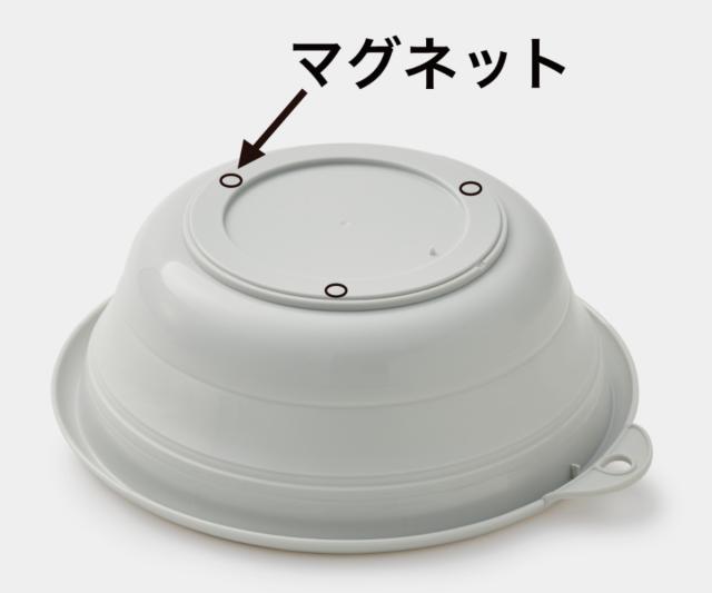 マグネットを内蔵した湯おけです。使用後は壁面にピタッと貼り付けて収納できます。壁面収納することで水はけが良くなり、ヌメリ汚れの防止にもなります。