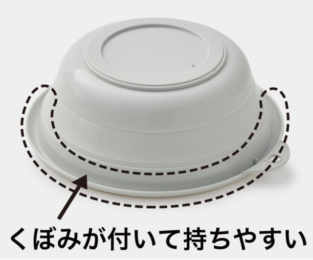 湯おけの淵部分には、くぼみが付いているので持ちやすいです。