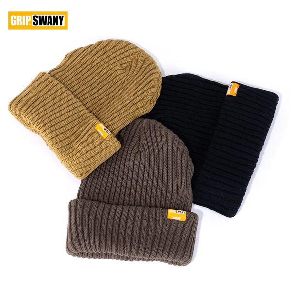 GRIP SWANYネームがついたシンプルでスタイリッシュなリブ編みニットキャップ。