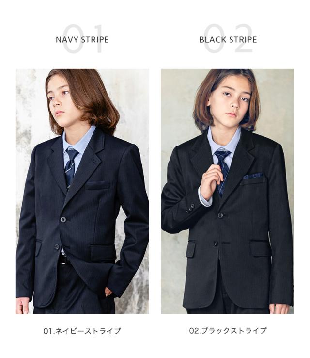 卒業式 スーツ 男の子 150 160 165 cm 子供スーツ 5点セット (ジャケット パンツ シャツ ネクタイ ポケットチーフ) ストライプ ジュニア 子供 キッズ フォーマル こども 小学校 小学生 発表会 エイマード 送料無料
