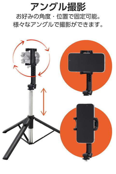 スマホ 用 2Way 三脚 Bluetooth リモコン付き 1500mm 軽量 ブラック ┃PWSTSR03150BK