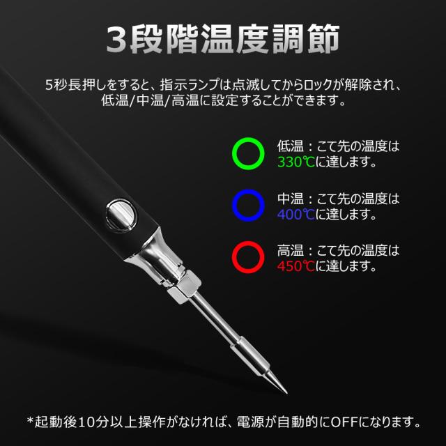 USB充電式はんだごて 3段階温度調節 3秒急速昇温 修理作業に最適 コードレス こて先交換可能 こて台付き はんだ線付き