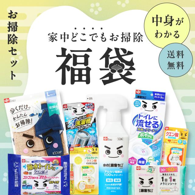 福袋 2025 中身がわかる 激落ちくん お掃除セット 8点セット リビング系 アルカリ電解水 スリッパ メラミン 洗濯槽クリーナー クエン酸 キッチン 掃除 レック lec